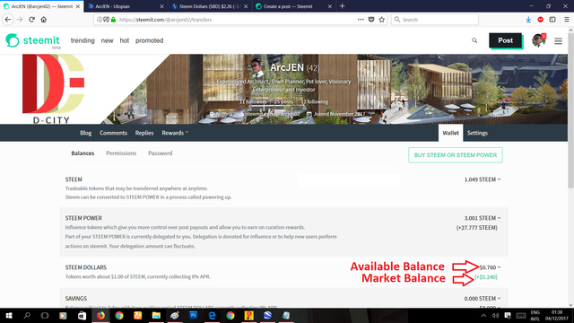 A pop-up notice will be sent to you notifying you of the transaction and when you visit your wallet you will notice a split in your SBD balance with the balance above showing you available balance and the one below show what you have in the market. Once your transaction is confirmed your Steem balance will be credited.