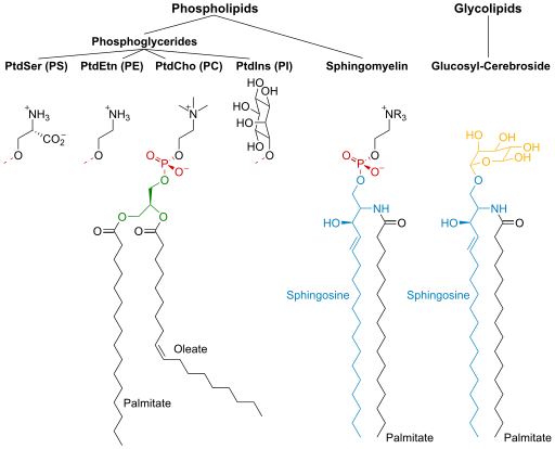 First of all, let us start from the anatomy of a phospholipid. There are numerous kinds of phospholipids like shown below: