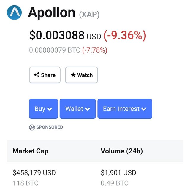 더불어 애픽스 토큰의 티커인 XAP은 아폴론(Apollon)이라는 곳에서 선점하여 이미 코인마켓캡에도 등록되었기 때문에 애픽스 토큰은 티커이름도 바꿔야 하는 상황에 처해 있습니다.