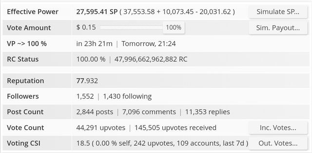 Support 109 active Steemians on the platform with 242 votes, according to a screenshot of the Steemworld tool, with a CSI value of 18.5.