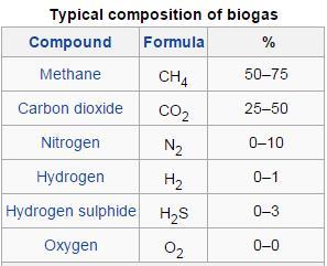 The composition of biogas can be seen in the Table below.