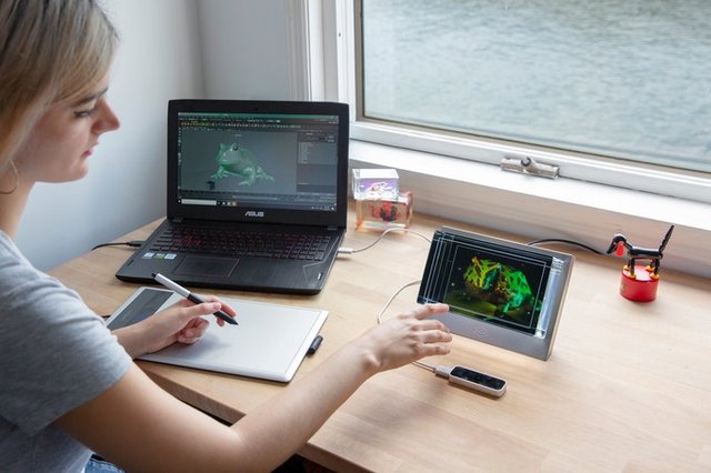 "The Looking Glass is the first desktop holographic display designed for 3D creators. No VR or AR headgear required."