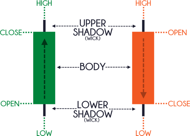Back to the ordinary candle; it has a body which is in form of solidified wax. The body is what holds the tail in place. Therefore, without the body, we donot have the tail. And just like that, candlestick patterns also have bodies. The body will show the open and close prices of the trading day. In other words, the body will show an investor the distance between the opening and closing prices for the day. We are able to establish a high or low price basing on the distance between the opening and closing prices. Hereby establishing the fact that without the body, we donot have the shadow.