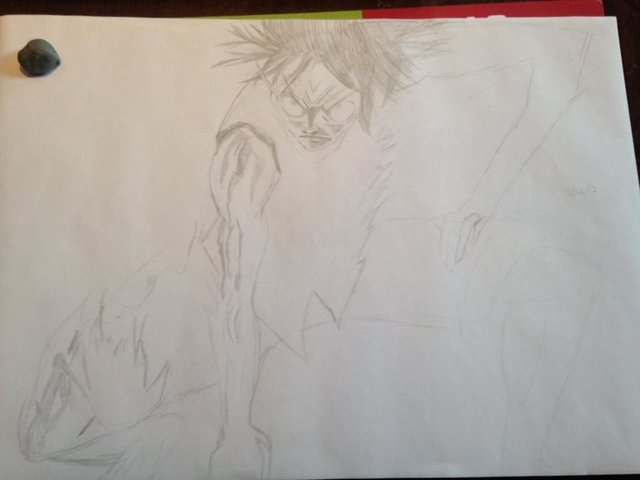 I first started out with a light general sketch of the positioning of the body and slowly started shading a little: