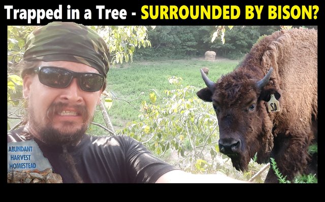 Trapped in a Tree SURROUNDED BY BISON