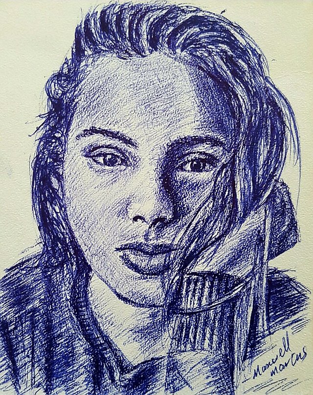 The portrait was done with a blue ballpoint pen on a needlepoint paper. I used cross hatching technique to create this piece