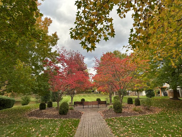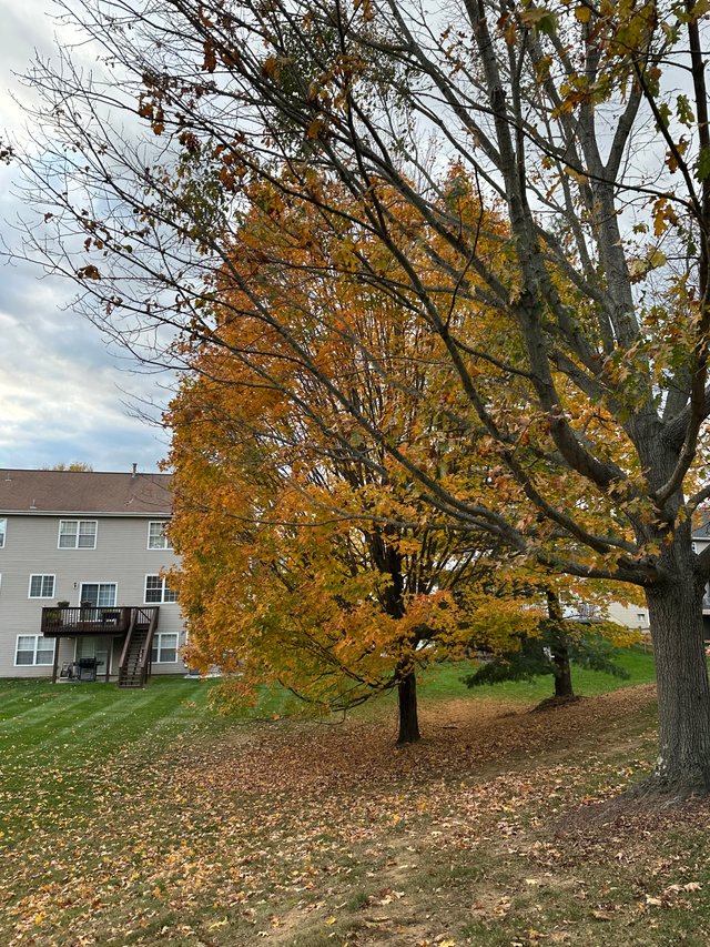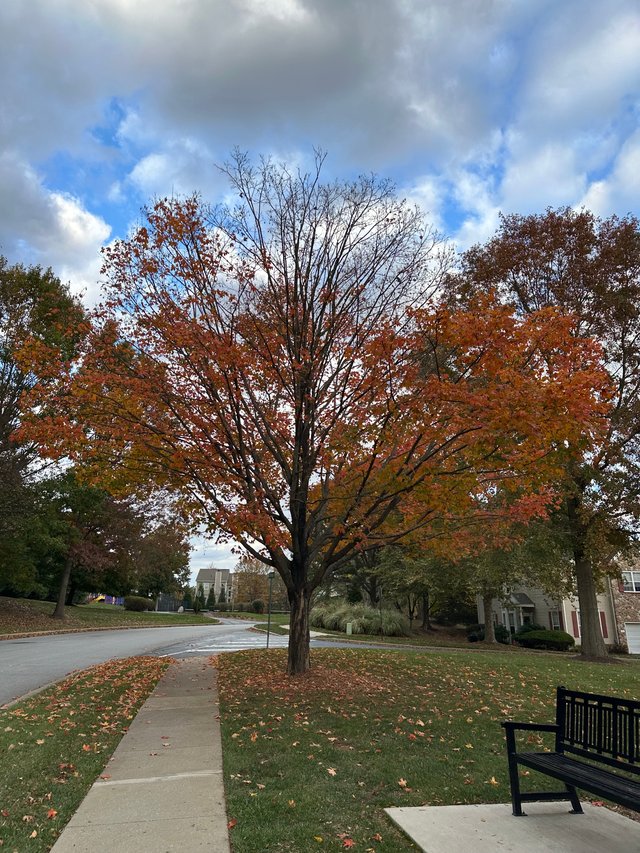 我们小区和隔壁小区都有很多枫叶,这几周的叶子也都开始变色了。在小区的坡上,有几棵叶子颜色特别漂亮,但是,这落叶的速度也是非常快,没有几天,大多数的叶子都已经在地上了,被风吹过,一路飞扬的。