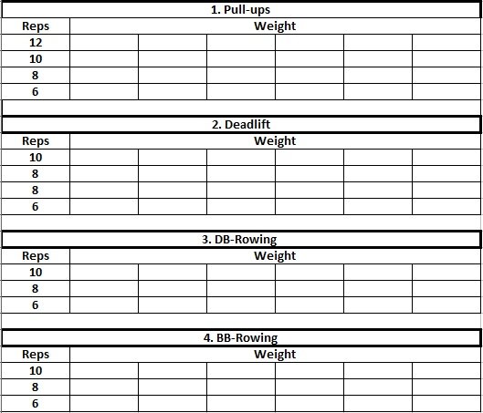 Tuesday seems to be a short day but don't be fooled. It is intense as fuck. Deadlifts and a lot of rowing make Arnold proud. If you just started working out like I expect it then you will a lot of time to be able to do all the reps for Pull-ups. It is recommended to start easy here because if you have a weak back it is easy to injure it also you maybe won't go sore.
