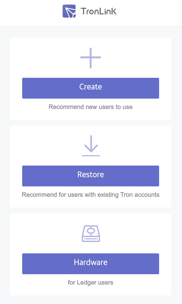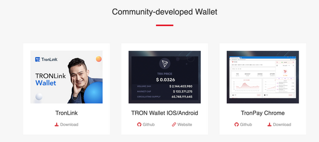 https://tron.network/wallet?lng=en 링크에서 지갑 목록 확인