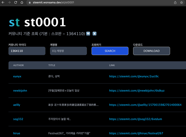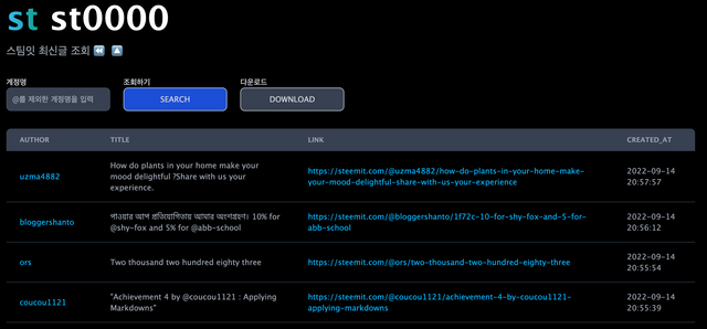 일단 오픈 해서 목록 조회를 할 수 있고 링크로 이어지는 정도로 만들었고, 시간 되면 내용 보기 등을 제공할 예정입니다. 요즘 스팀잇 사이트를 보다보면 느린 감이 많아서 ...