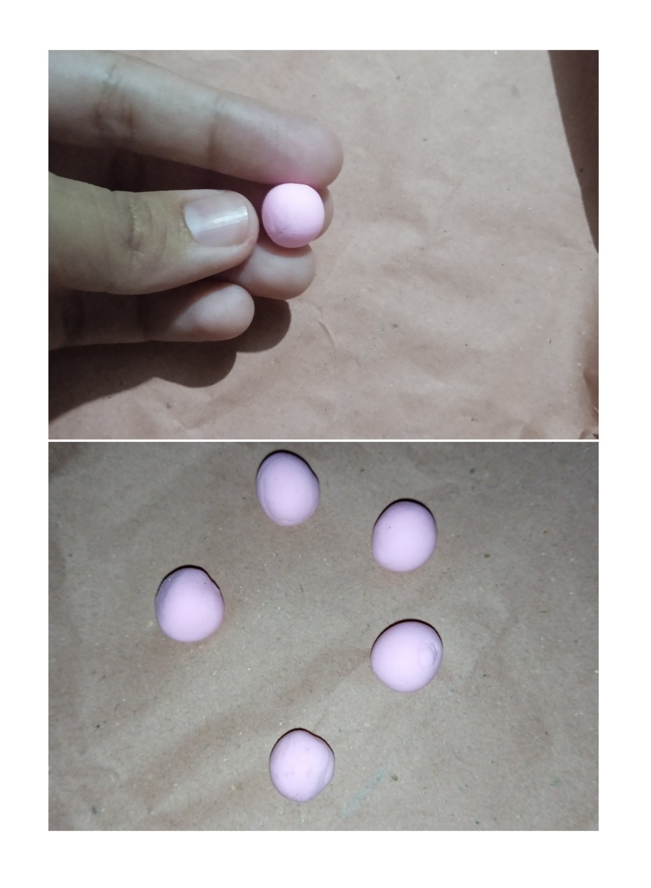 প্রথমে আমি হালকা গোলাপি কালার দিয়ে ছোট ছোট গোল করে নিয়েছি। এবং গোল বলের মতো অংশ গুলো একসাথে লাগিয়ে নিয়েছি।