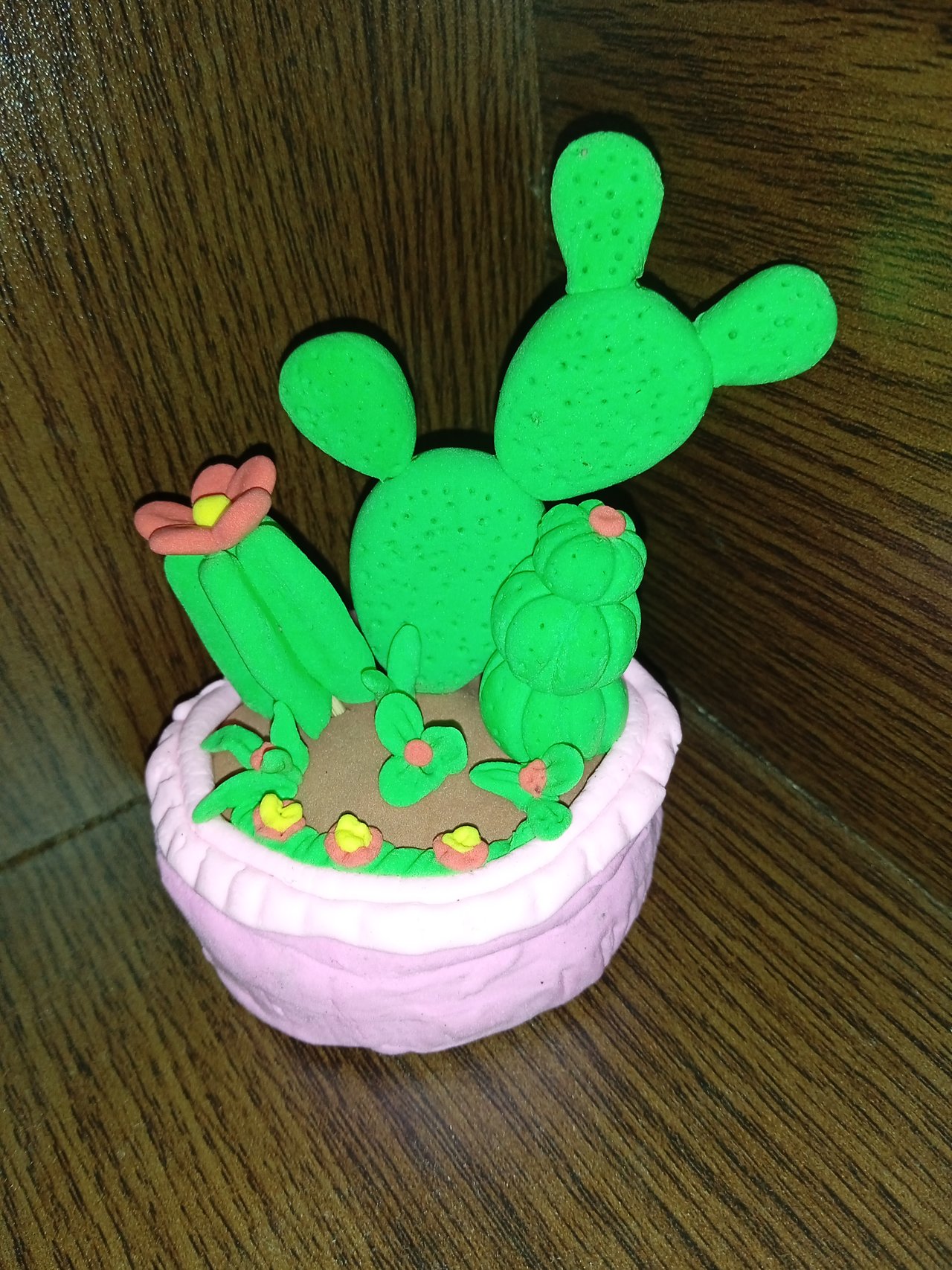 এরপর আমি আরও একটি ক্যাকটাস তৈরি করেছি। এটি তৈরি করতেও আমি সবুজ কালার ক্লে নিয়েছি।