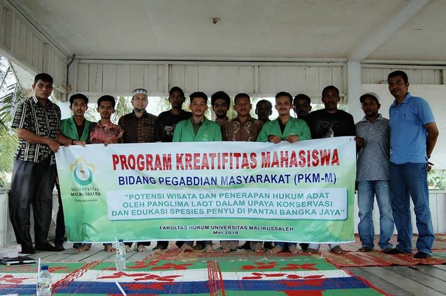 Students of Faculty of Law University of Malikussaleh carry out activity of Student Creativity Program of Community Service (PKM-M) with title "Tourism Potential and Application of Customary Law by Panglima Laot In Conservation Effort and Education of Sea Turtle Species in Bangka Jaya Beach". Together with related stakcholder including Vice Dean III of Student Affairs Faculty of Law, Department of Marine and Fishery of North Aceh, Practitioner of turtle conservation, and public figure along with member of society of Gampong Bangka Jaya, Kec. Dewantara, Kab. North Aceh.