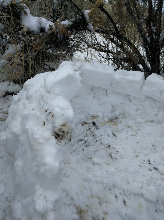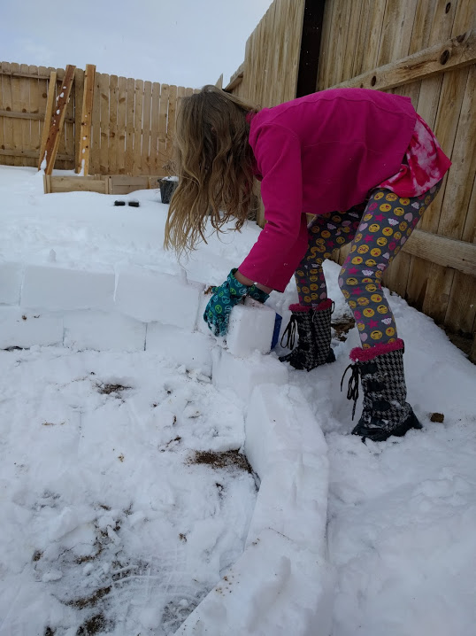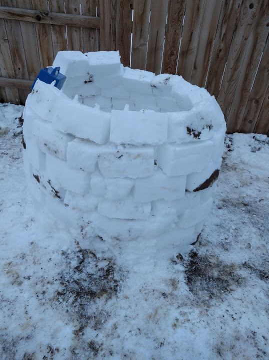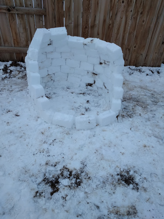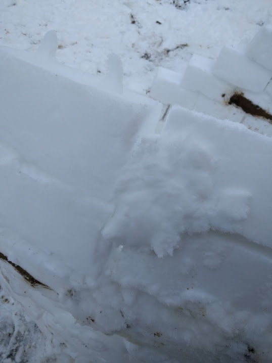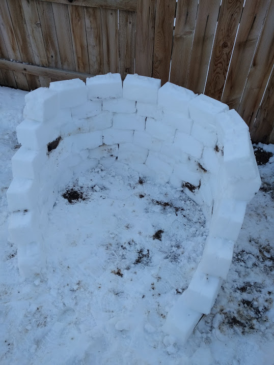 2.5 hours in, my toes are getting cold, fingers are getting tired, back is getting sore, and I'm hungry. I need to make dinner. It's creeping up on 6pm, the snow is getting a little too crispy to work with. So what happens next???