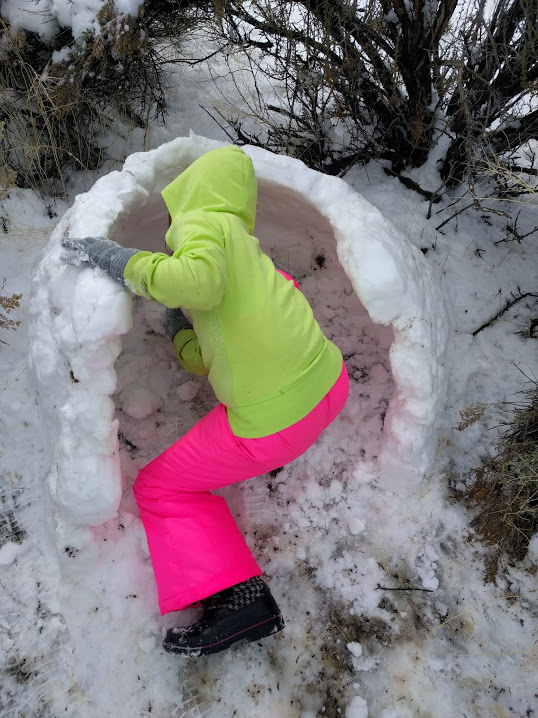 Did I finish the igloo really quick and then run into the house to make dinner? Did I call it a day and finish the igloo the next morning? Did the sun melt it before I could get to it the following morning? Did we have another snow fall? Did the igloo crash to it's doom? Did I give up altogether because I was sick of igloo-ing? Or something else entirely altogether? Or a combination of answers?