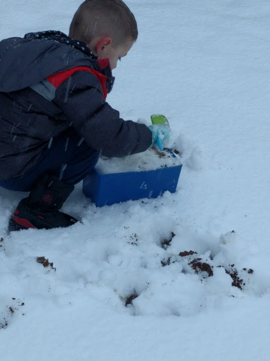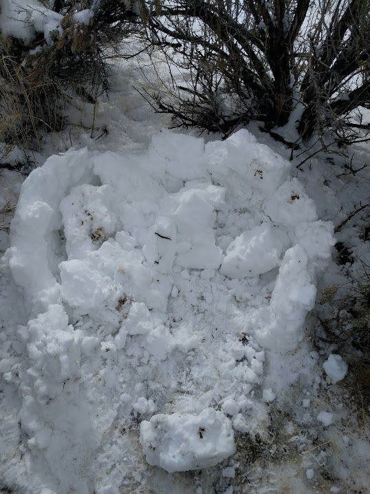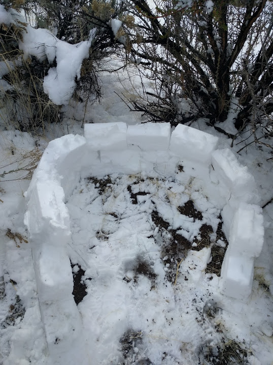 ....while I brought my trusty snow-brick makers and started on a little igloo home under a bush, perfect for a jack rabbit family.