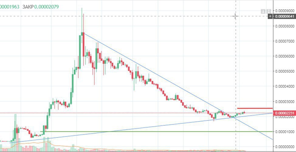 The ADA / BTC coin on the daily charts shows the movement in the upstream channel