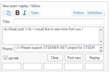 In STEEMER .NET app for Windows (and later Android), you will be able to do following: