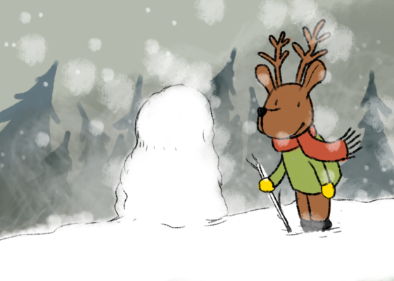Yesterday, this reindeer was sitting by the fire and on day 2 he decided he build a snowman. Not a good idea to do it alone maybe he will find someone next time. Today is already the second prompt for advent drawing challenge 2019 I am trying my best to participate.