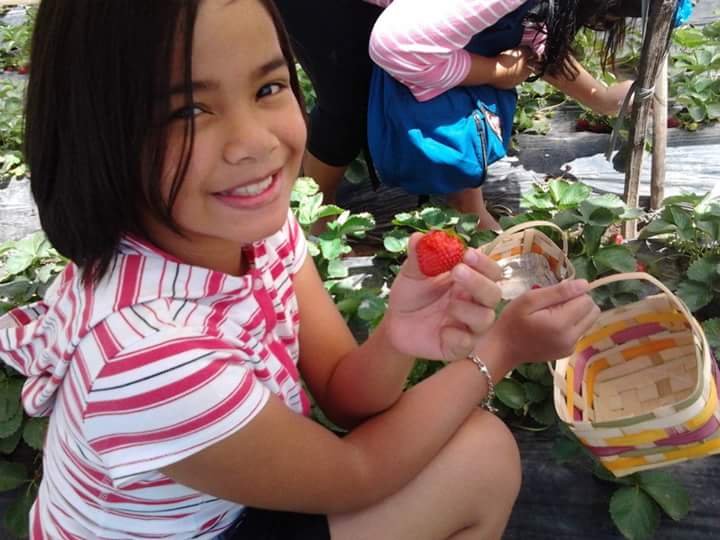 Strawberry farm. Here you can harvest or pick strawberries on your own. Sadly my daughter never collect any of it. When I asked her why