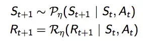 模型M实际上就是对环境,MDP<S, A, P, R>的参数化η近似,假设状态S和行为空间A是已知的。实际上就是对转移函数P和奖励R的参数化近似。