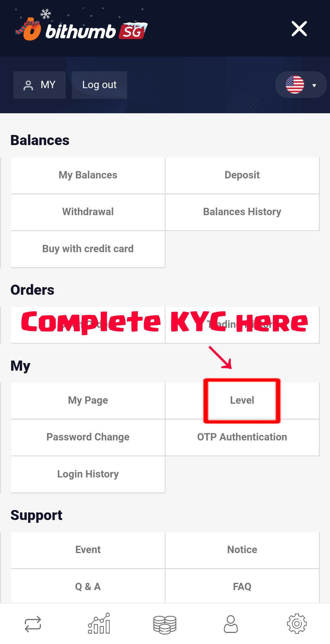 - Select " Level " and Upload any valid ID for KYC