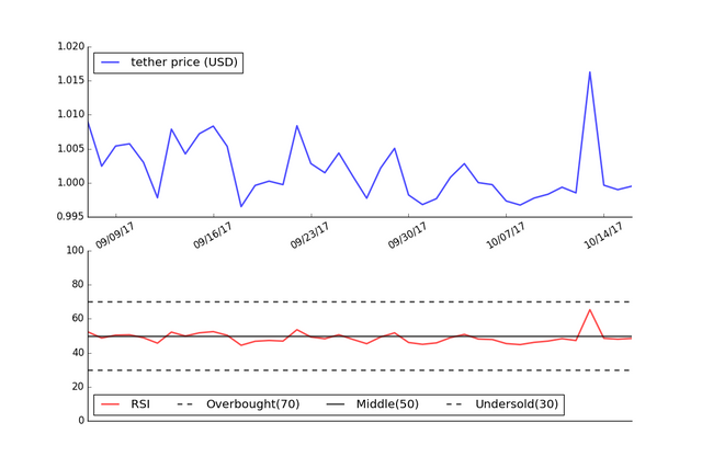 Since the RSI is currently between 30 and 70, this would indicate that Tether is neither overbought or oversold and that no material price change is expected.