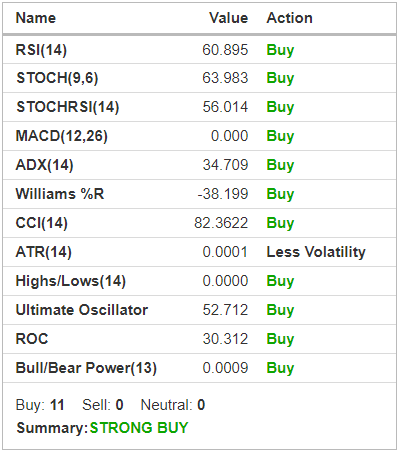 Moving Averages: 11 BUY / 1 SELL | Technical Indicators: 11 BUY / 0 SELL