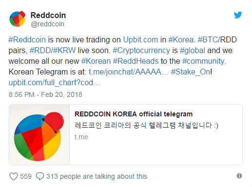 The price boost may have something to do with the fact that RDD just got added to UpBit – a popular cryptocurrency exchange based in Korea.