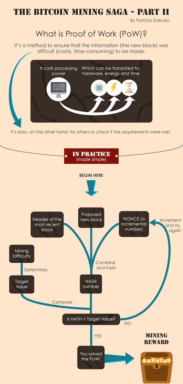 A proof of work is a piece of data which was difficult (costly, time-consuming) to produce so as to satisfy certain requirements. It must be trivial to check whether data satisfies said requirements.