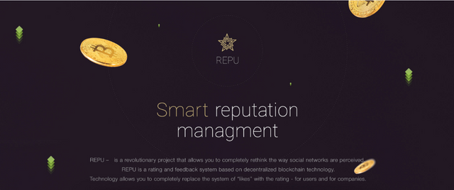 cистема REPU (сокращенная от английского значения - репутация) - это революционный проект, который позволяет вам полностью переосмыслить, как воспринимаются социальные сети. REPU - это система оценки и обратной связи, основанная на децентрализованной технологии blockchain. Технология позволяет полностью заменить систему «любит» рейтинг - как для пользователей, так и для компаний. Оценка, впоследствии, может быть использована в качестве инструмента оценки в различных областях жизни человека - начиная с профессиональных навыков, финансовой стабильности и заканчивая всеми возможными аспектами поведения и взаимодействия с общественностью.