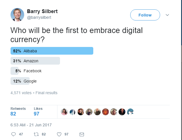 Alibaba Would Accept Bitcoin Before Amazon, Google: Silbert’s Survey