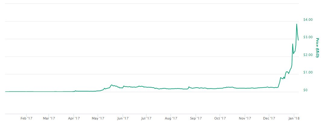 In contrast, XRP climbed 35,000 percent to $2.30 last year and has soared nearly 67 percent since to an all-time high of $3.84 on Thursday, according to CoinMarketCap. The coin remains the second largest by market cap, but fell to trade near $3 on Friday after leading U.S. digital currency marketplace Coinbase pushed back against rumors it would launch XRP trading.