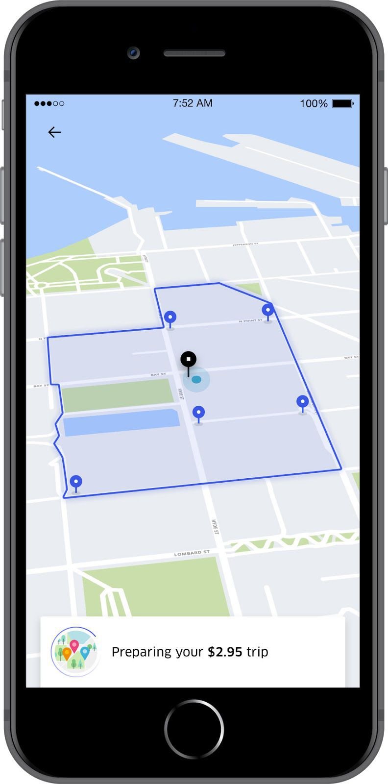 Uber says Express Pool solves the main pain point of standard Pool — the wild inconsistency of travel time, which happens when you get matched with someone who takes the driver hugely out of the way. Express Pool all but eliminates the problem, first by by keeping the driver on a generally straight path, and second by increasing the time it takes to make a match: when you call for an Express Pool, the app will take 1-2 minutes to find your best matches in the area.