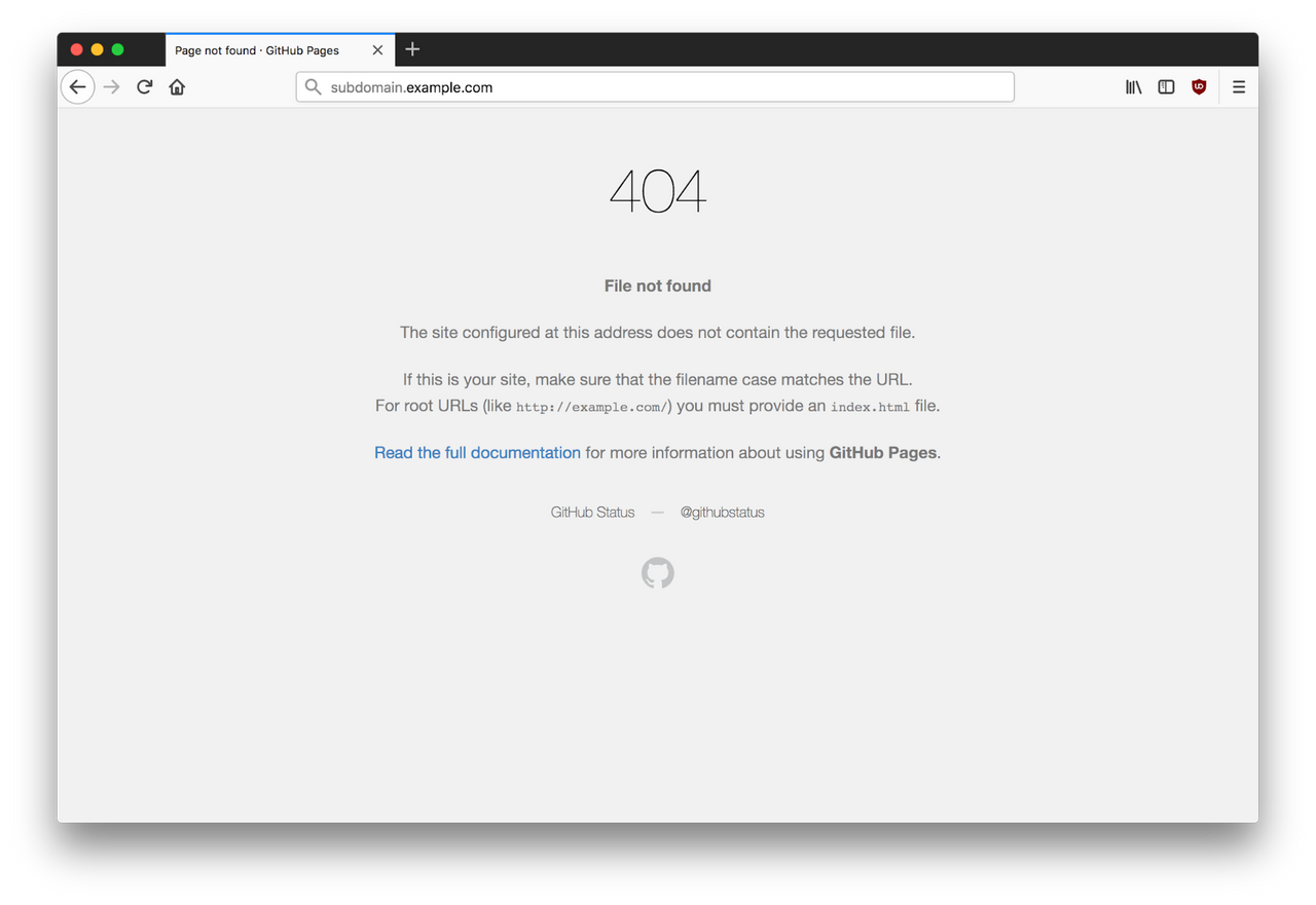 Subdomain takeover vulnerabilities occur when a subdomain (subdomain.example.com) is pointing to a service (e.g. GitHub pages, Heroku, etc.) that has been removed or deleted. This allows an attacker to set up a page on the service that was being used and point their page to that subdomain. For example, if subdomain.example.com was pointing to a GitHub page and the user decided to delete their GitHub page, an attacker can now create a GitHub page, add a CNAME file containing subdomain.example.com, and claim subdomain.example.com.