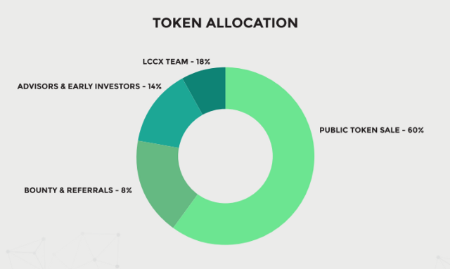 The LCCX ICO will see the release of LXT tokens. There’s a total supply of 100 million LXT tokens. The tokens are ERC20 tokens on the Ethereum blockchain. Of the total supply, 60% are allocated to the token sale, including the ICO and pre-ICO. The remaining tokens are allocated to the team (18%), advisors and early investors (14%), and bounties and referrals (8%).