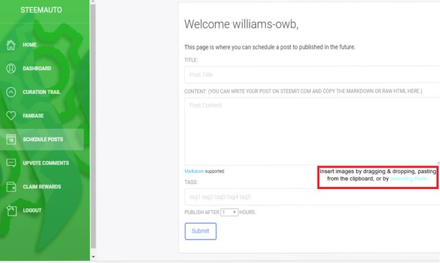There is need in adding the insert image function in the schedule post feature of steem auto. Schedule post is the feature where users can schedule posts to be published in the future.