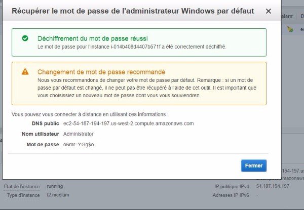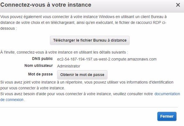 Copy all DNS public information, Nom utilisateur and mot de passe, and then press Fermer