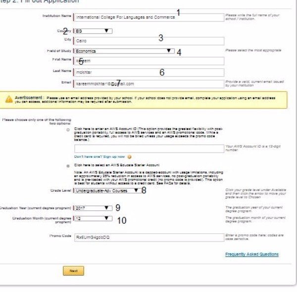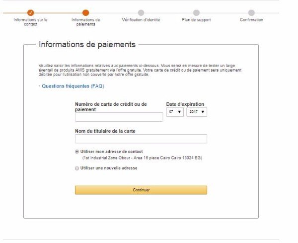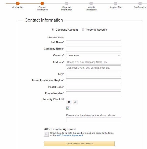 At this stage we will not enter any information. Just enter the link below: Amazon Web Service Support.