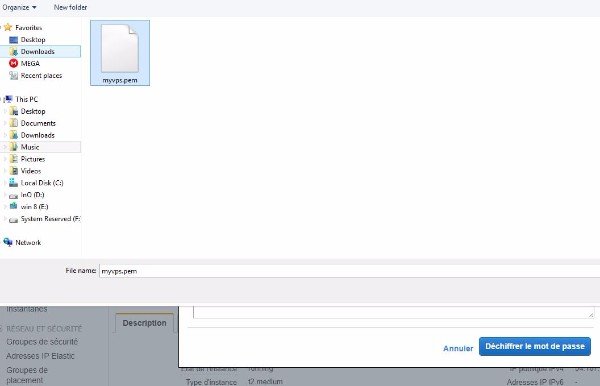 Then we select the file with the login information for this vps and then press Dechiffre le mot de passe