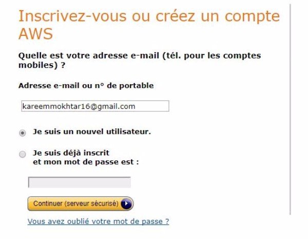 We put e-mail and choose Je suis un nouvel utilisateur and press Continuer