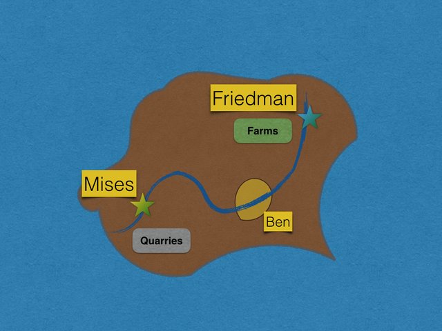 Basically, it's the story of two towns connected by a river, and of a tragedy-of-the-commons problem where landowners along the river start charging tolls and eventually stifle trade between the two towns, all because there was no government there to help them coordinate. Then I wrap it up with a nice barbarian invasion and everybody dies. See, you shouldn't be anarchists! (Maybe I should have left the barbarians out; they definitely enhance the straw-man aspect...)