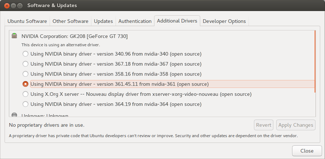 Then just go into software center and select the Nvidia driver of your choice. Usually the newest is best.