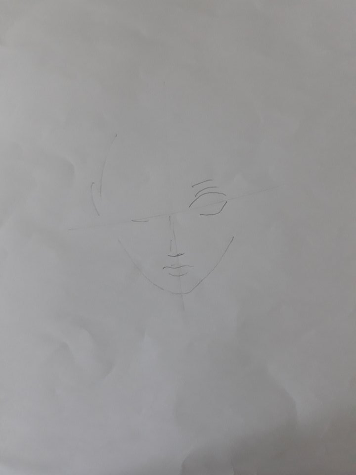 It all started to Sakura's face. This time, I draw lines. It's a little bit useful indeed. It is use to estimate the distances between eyes, nose, lips, ears and hair.