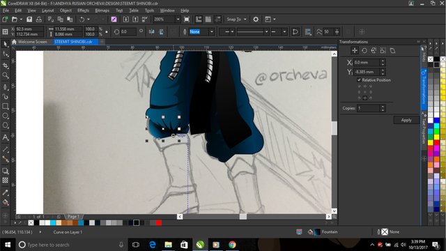Berikut beberapa screenshot proses pembuatan Steemit shinobi dalam bentuk vektor sengan menggunakan coreldraw :