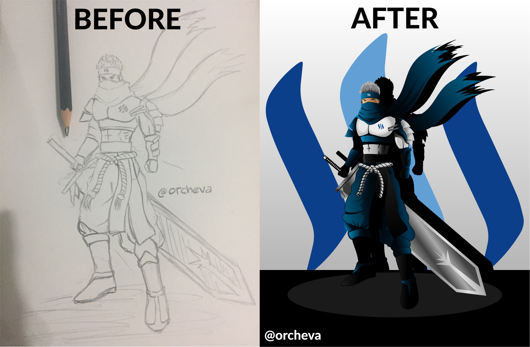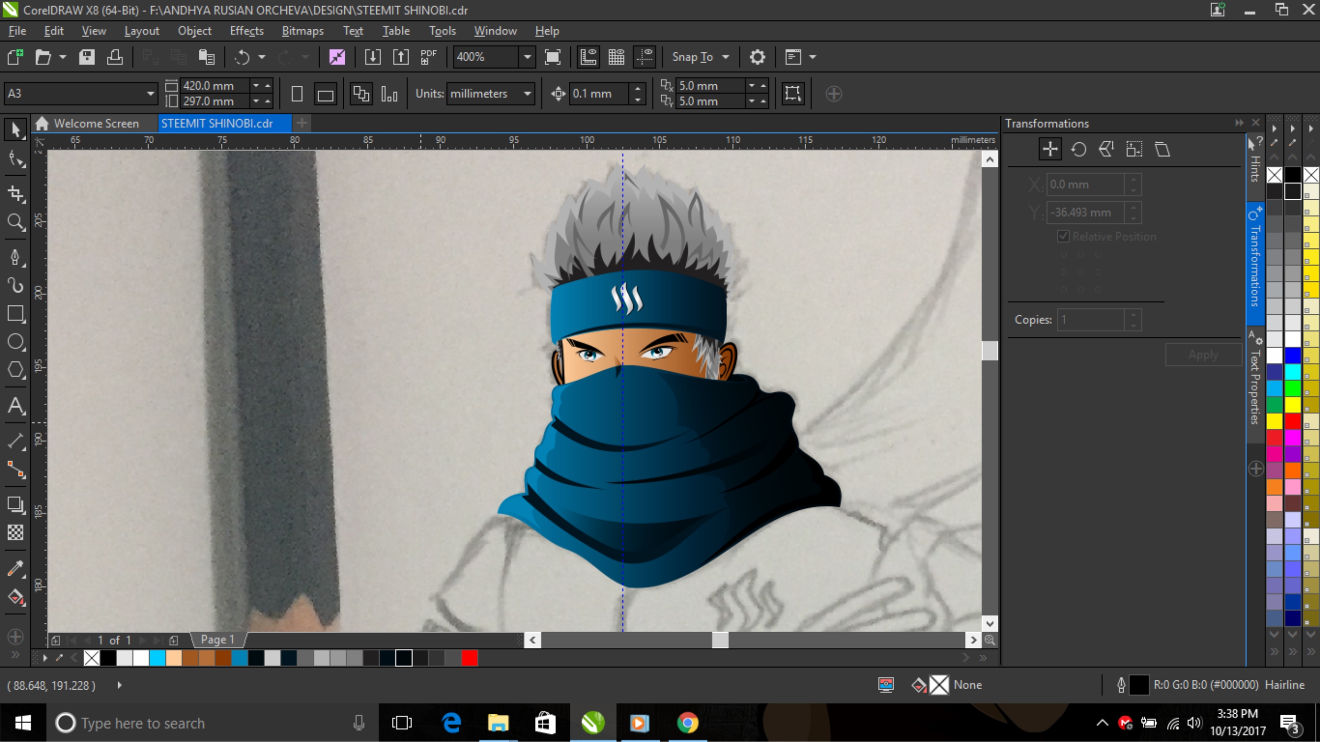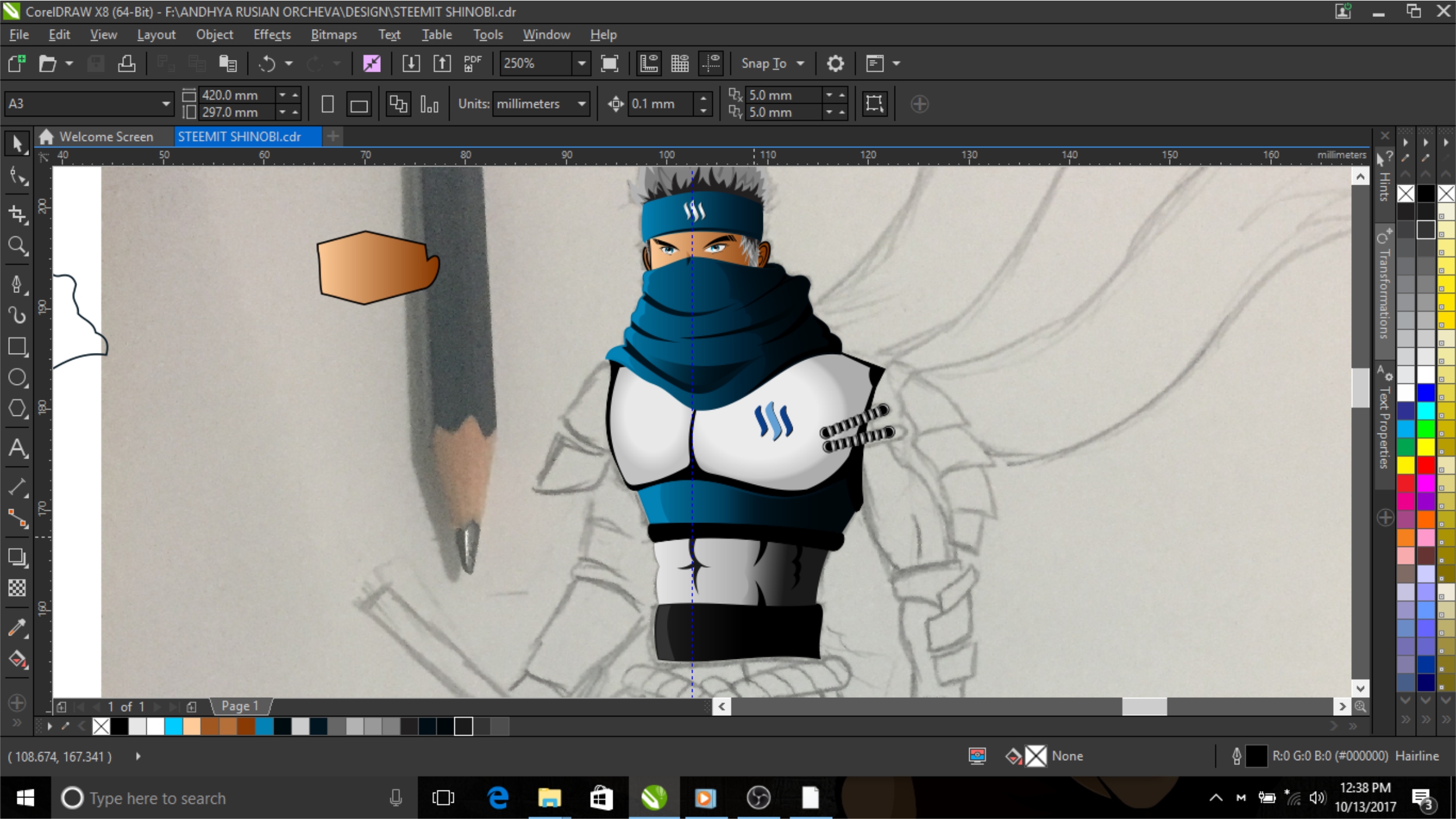 Here are some screenshots of Steemit Shinobi making process in vector by using coreldraw: