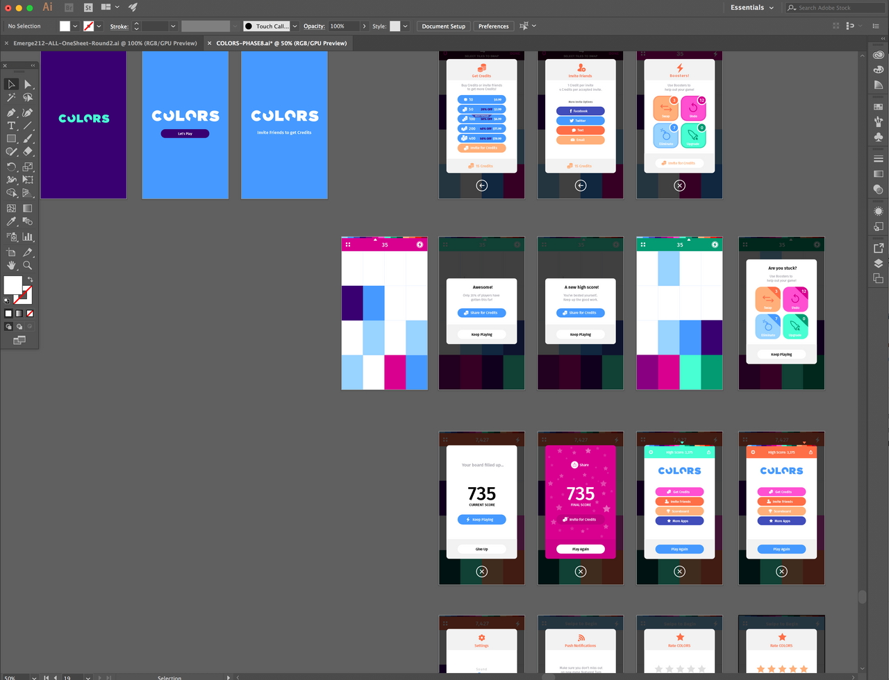 We set out designing the app in Illustrator, creating different layouts and graphics until we finally had something we liked. We brought on a developer who I knew from school and got started building what was only in our minds and in Illustrator at the time.