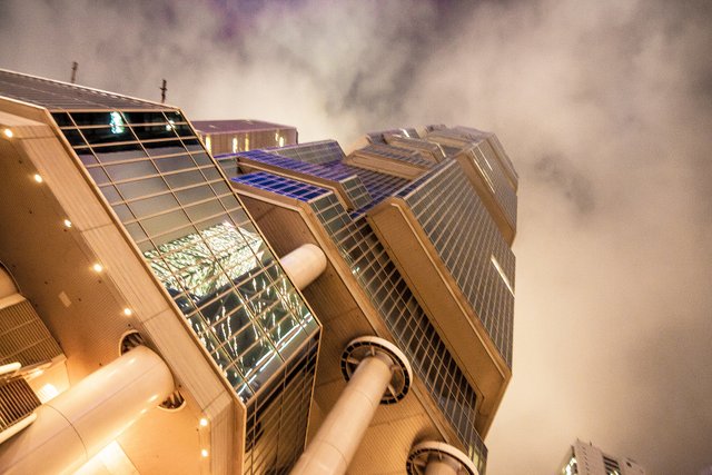 Hong Kong is a great place for Wednesday's architectural photo competition. There's so much inspiration, so many cool buildings. Especially the modern tall buildings. Also, the Asian architecture is quite different from the European and American one as you can see. It's a nice building, isn't it?