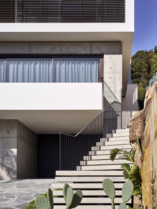 Located in the eastern suburbs of Sydney with distant views of the harbor, this irregularly shaped and narrow site with a steep slope and lots of rocks posed a significant challenge to the architect.