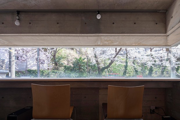 In Yokohama, Japanese architect Shinsuke Fujii has softened the brutalist structure of his building with oriels opening onto a view of cherry blossoms.